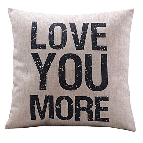 Create For-Life Cotton Linen Decorative Pillowcase Throw Pillow Cushion Cover Love You More Square 18"