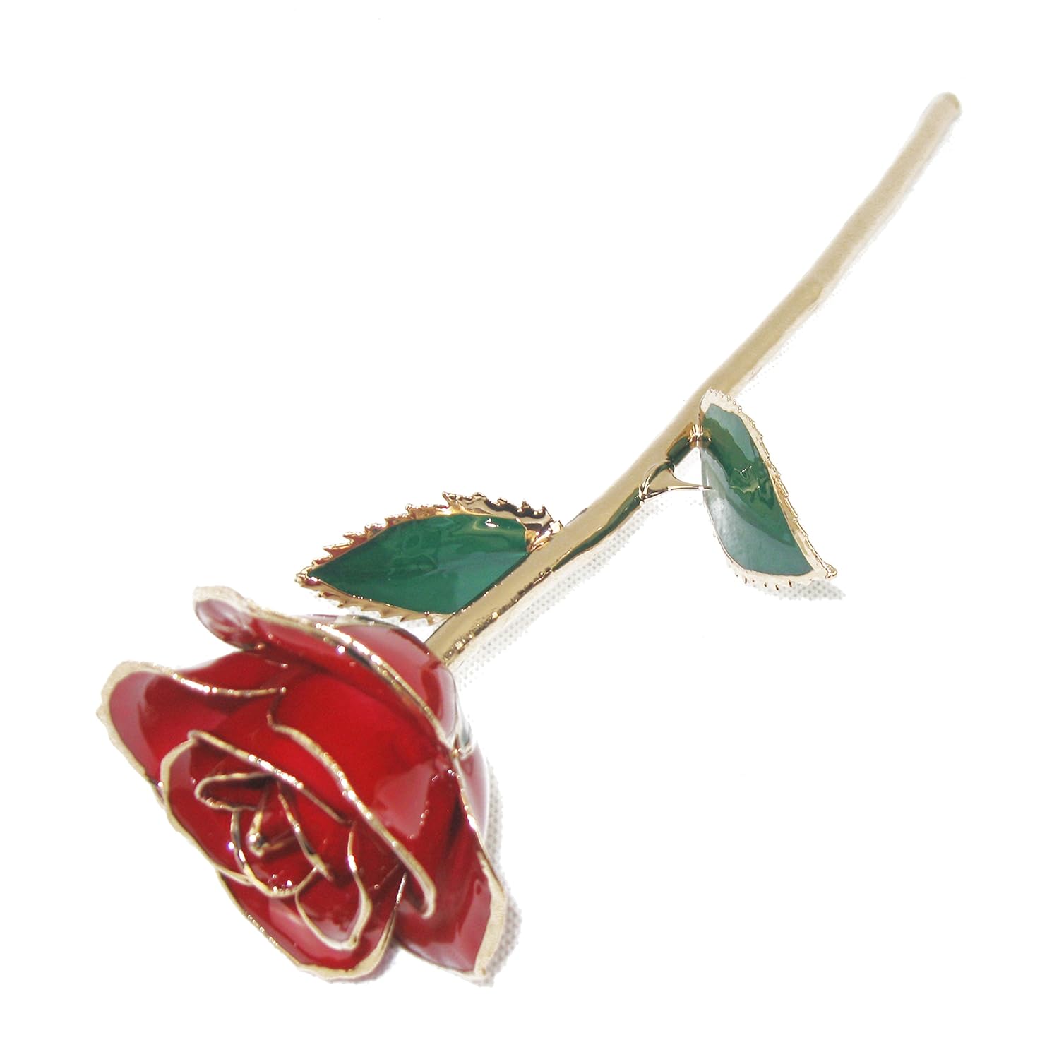 ZJchao(TM) love forever Long Stem Dipped 24k Gold Foil Trim Rose (Red)